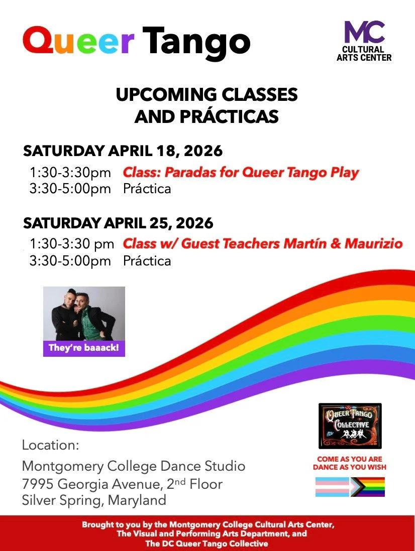 Organized by LGBTQ+ tango dancers in the Washington, DC area, the DC Queer Tango Collective strives to create queer-centered spaces for learning and dancing social tango, for connecting and sharing with each other, and for building and nurturing our communities. All of our events are free of charge. In our spaces, we acknowledge, respect and celebrate the full rainbow of gender identity and expression, and we explore the joys of tango dancing without preconceptions about gender or gender-based roles.